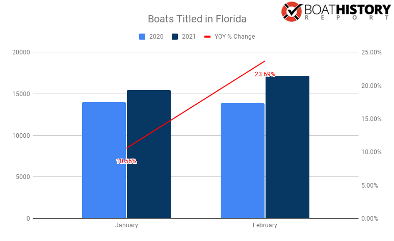 2021 is off to a great start with Florida continuing to see YOY increases in new titles being issued with January up 10.6% and February up 23.7%, for an overall 17.1% increase YTD.