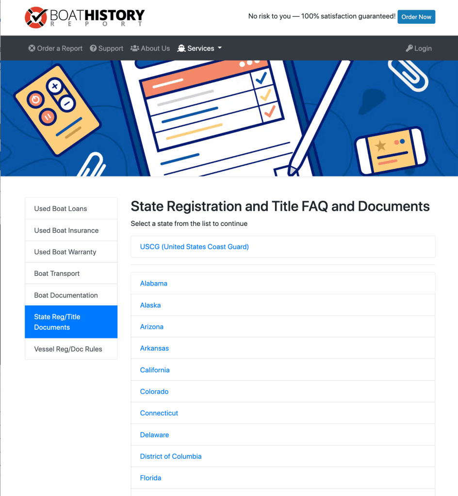 Wondering how to register your boat? Asking Google, “How do you Title a boat in…?” Unsure of what your state’s requirements are for registering and titling boats? Boat History Report has put together a comprehensive guide for registering and titling boats in every state.