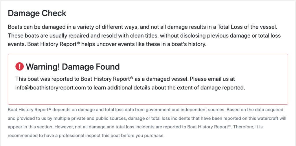 In today’s limited market, it’s easy to get caught up in what might look like a good, clean boat without taking the time to verify the history. But, if this customer had skipped that step, they would have spent $30,000 on a boat that they might not be able to insure and might end up costing them thousands in repairs. A clean boat title can be very deceiving but it’s important to remember that the only states that issue any sort of damaged brands for boats are Connecticut, Hawaii, Virginia, and DC. And all four of those only recently started issuing brands so they do not include prior damage history. Please take a minute to check the history because #BoatsCantTalk but #BoatHistoryReport can!